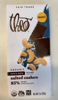 Share your experience with Salted Cashew Extra Dark Chocolate Bar by Theo. Help other chocolate lovers discover this 70% dark chocolate.