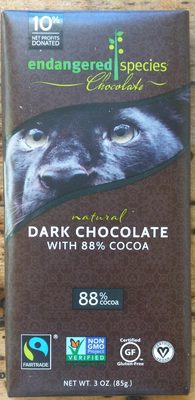 Share your experience with 88% Cocoa Extreme Dark Chocolate by Endangered Species Chocolate. Help other chocolate lovers discover this 88% dark chocolate.