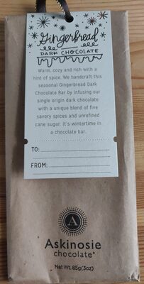 Share your experience with Gingerbread Dark Chocolate by Askinosie. Help other chocolate lovers discover this 70% dark chocolate.