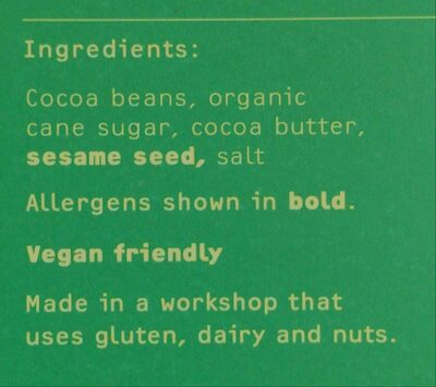 Toasted Sesame + Salt Single Origin Dark Chocolate is a dark chocolate with 70% cacao content from United Kingdom.